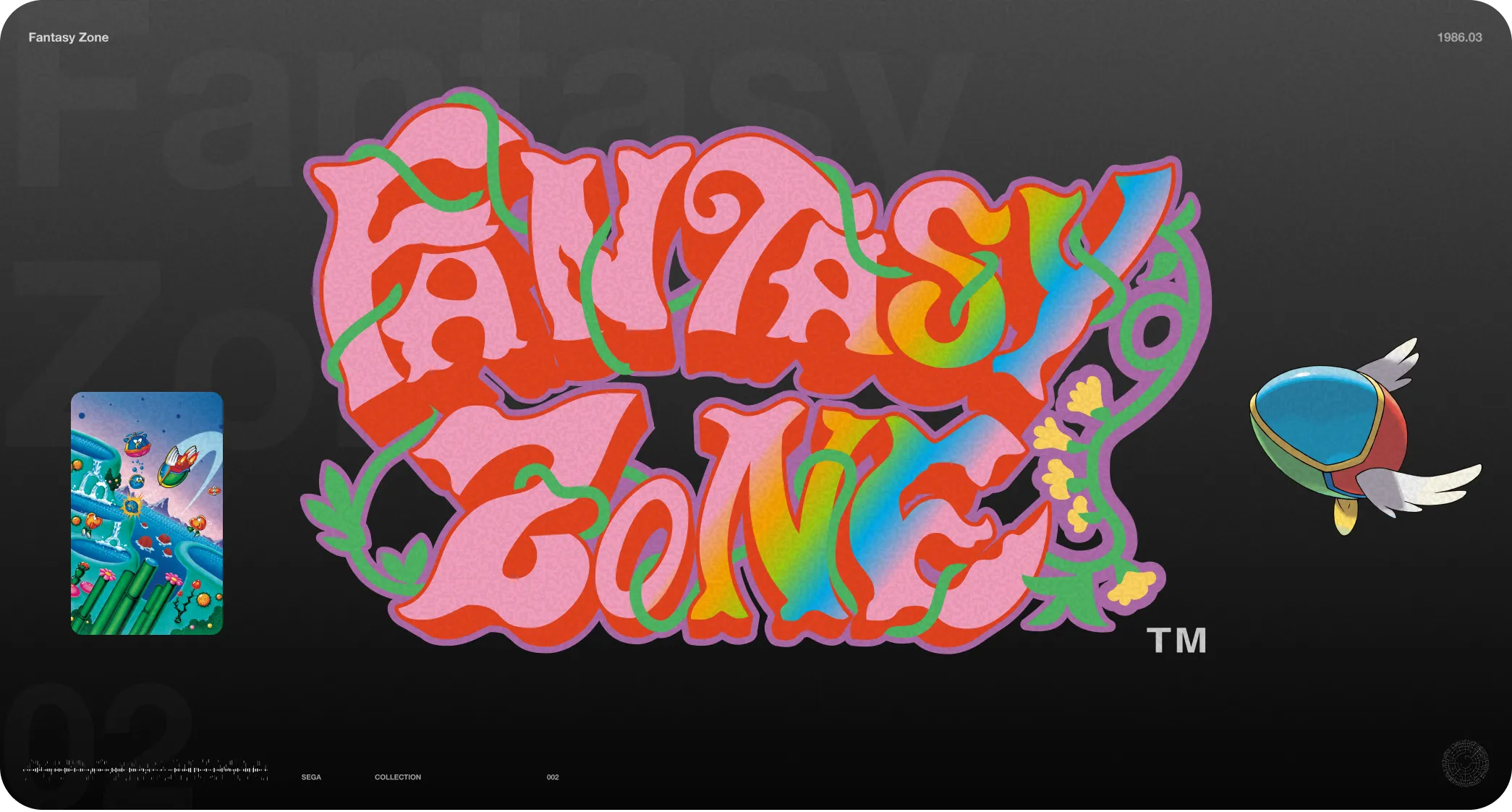 Launched as an arcade game. A flagship Sega shooting game featuring innovative systems such as free-directional scrolling and a shop-based power-up system.Players control the warrior “Opa-Opa” and embark on a journey to protect the peace of Fantasy Zone by thwarting the conspiracy of an organization building a massive fortress. A shocking truth awaits at the end of the game...