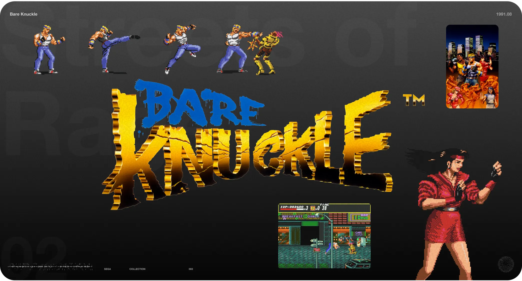 The Streets of Rage series is widely popular as a belt-scrolling action game.The first title, Streets of Rage: Furious Iron Fist, was released on the Sega Genesis.Depicts young fighters taking on a powerful syndicate using only their fists.The cooperative two-player mode—rare at the time—is one of its key appeals.The rhythmic soundtrack by Yuzo Koshiro received high acclaim, with a CD release as well.