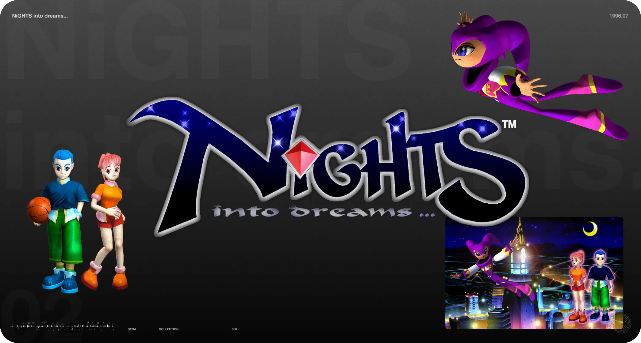Children lost in a dream world set out on an adventure with NiGHTS to protect the beautiful dream realm “Nightopia.”The unique floating sensation of freely flying through a mysterious dream world is a defining feature. The limited “Christmas NiGHTS” release also gained attention.